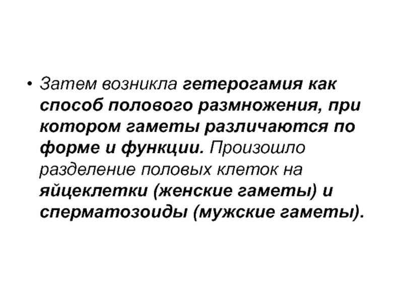 Слайд 24Затем возникла гетерогамия как способ полового размножения, при котором гаметы