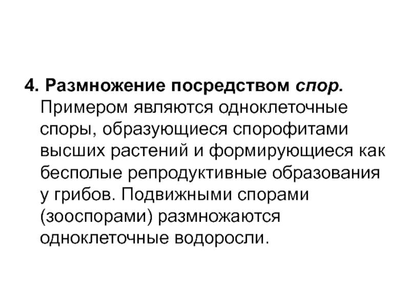 Слайд 104. Размножение посредством спор. Примером являются одноклеточные споры, образующиеся спорофитами