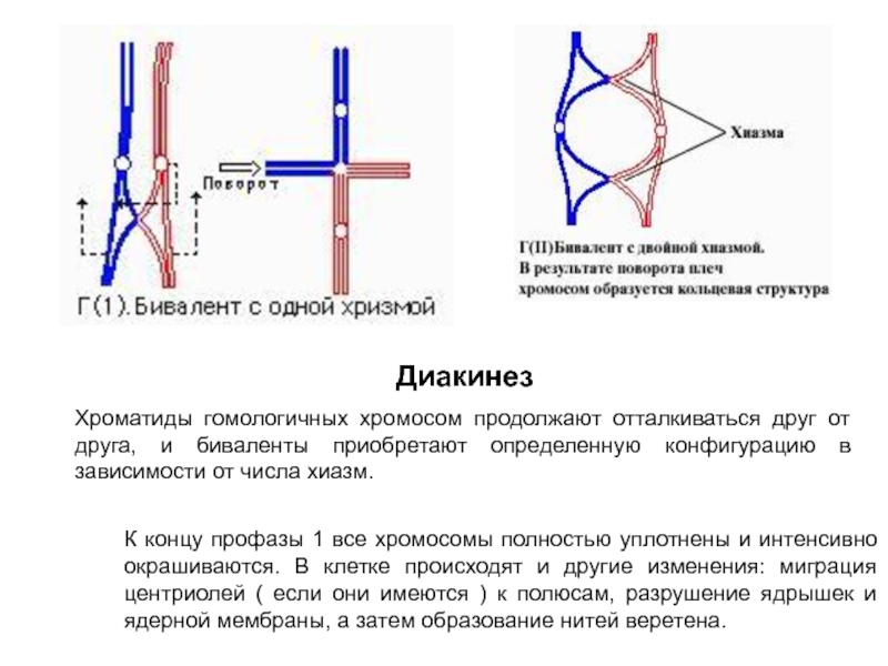Хроматиды гомологичных хромосом продолжают отталкиваться друг от друга, и биваленты