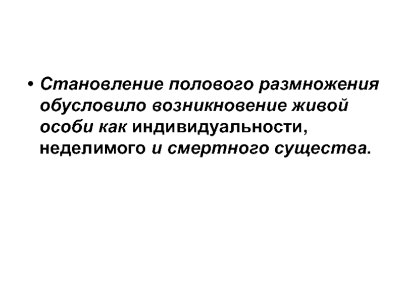 Слайд 19Становление полового размножения обусловило возникновение живой особи как индивидуальности, неделимого