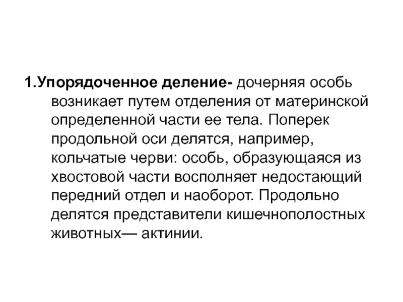 Слайд 121.Упорядоченное деление- дочерняя особь возникает путем отделения от материнской определенной