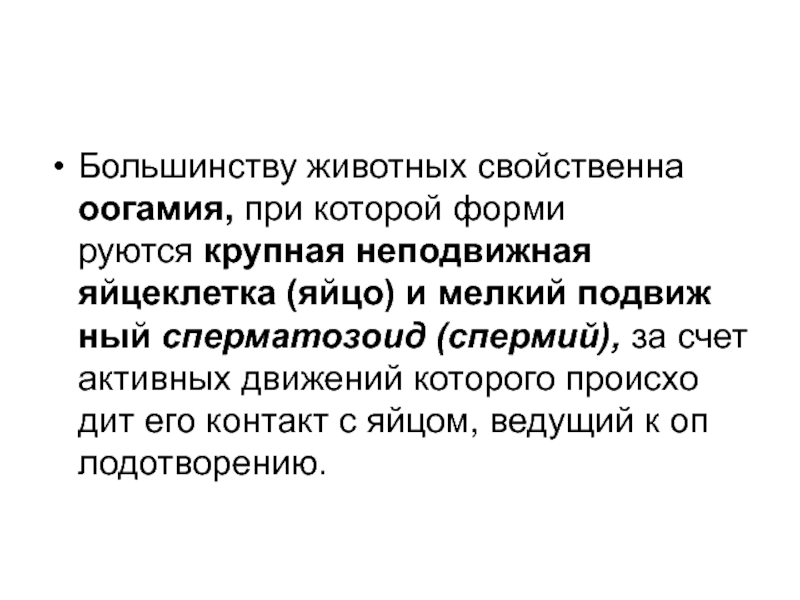 Слайд 25Большинству животных свойственна оогамия, при которой форми