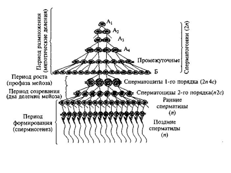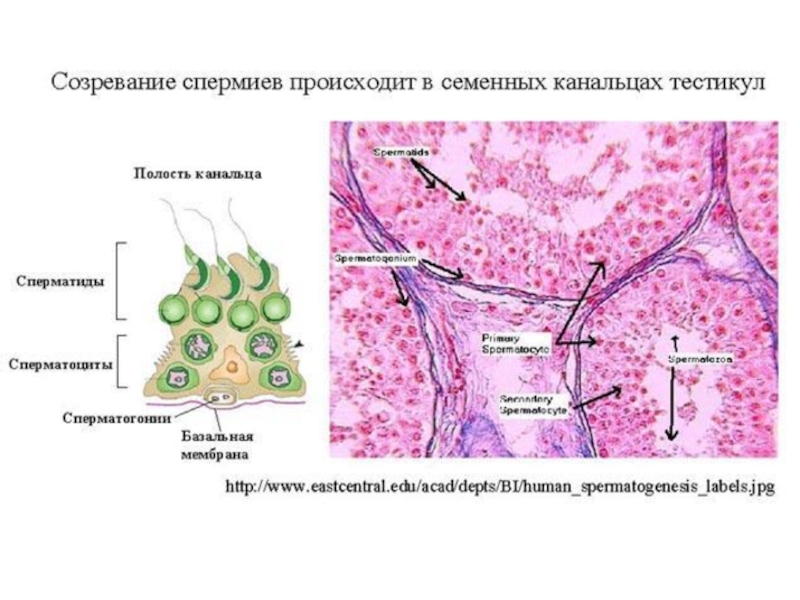 Слайд 51Сперматогенез у животных, в частности у млекопитающих, начинается с момента