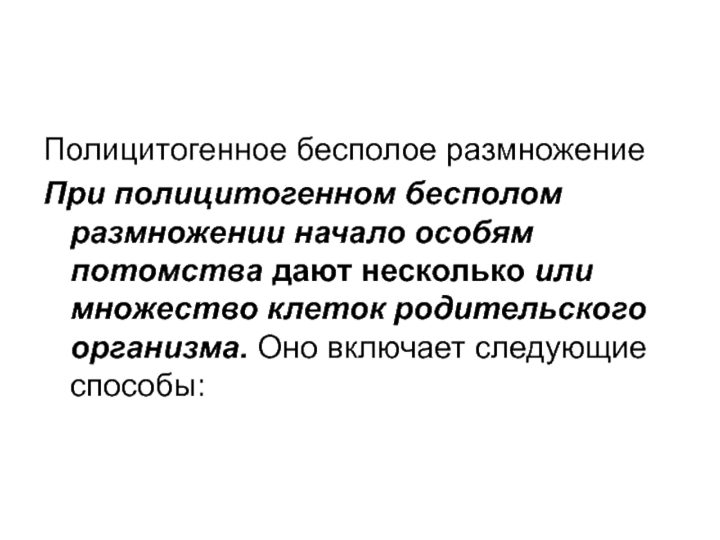 Слайд 6Выделяют 2 подгруппы способов: моноцитогенное и полицитогенное бесполое размножение.
