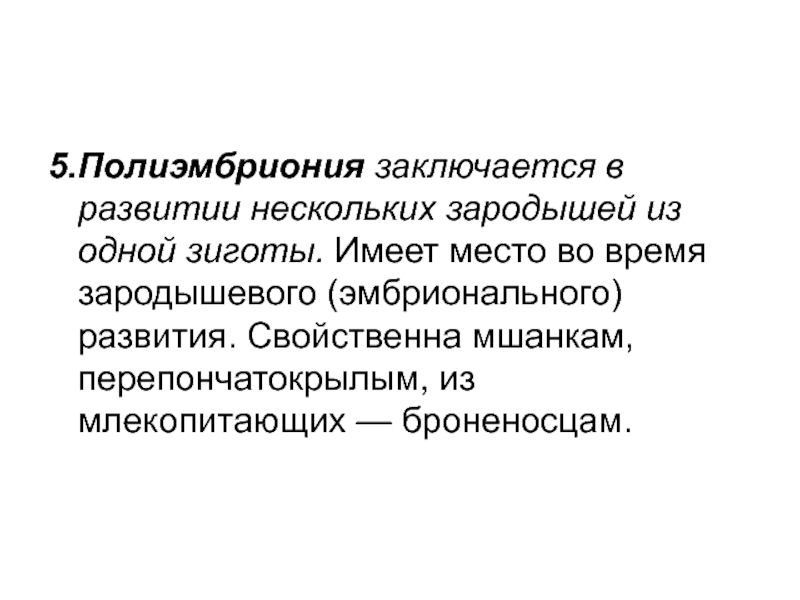 Слайд 165.Полиэмбриония заключается в развитии нескольких зародышей из одной зиготы. Имеет