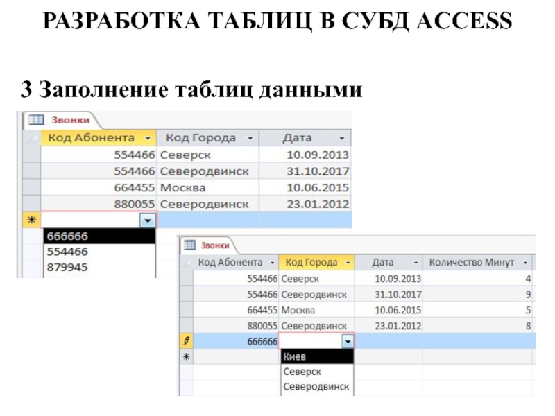 Разработка таблиц в СУБД Access3 Заполнение таблиц данными