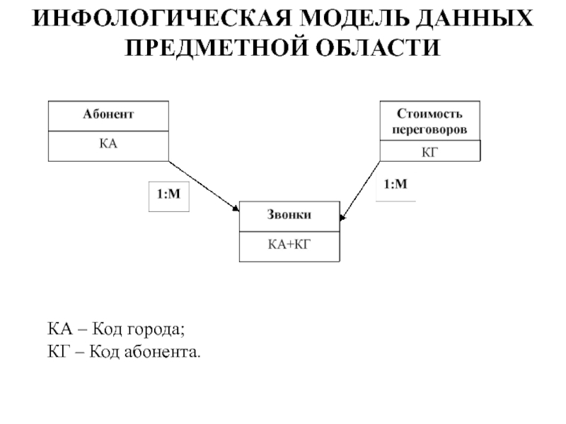 Инфологическая модель данных предметной областиКА – Код города;КГ – Код абонента.