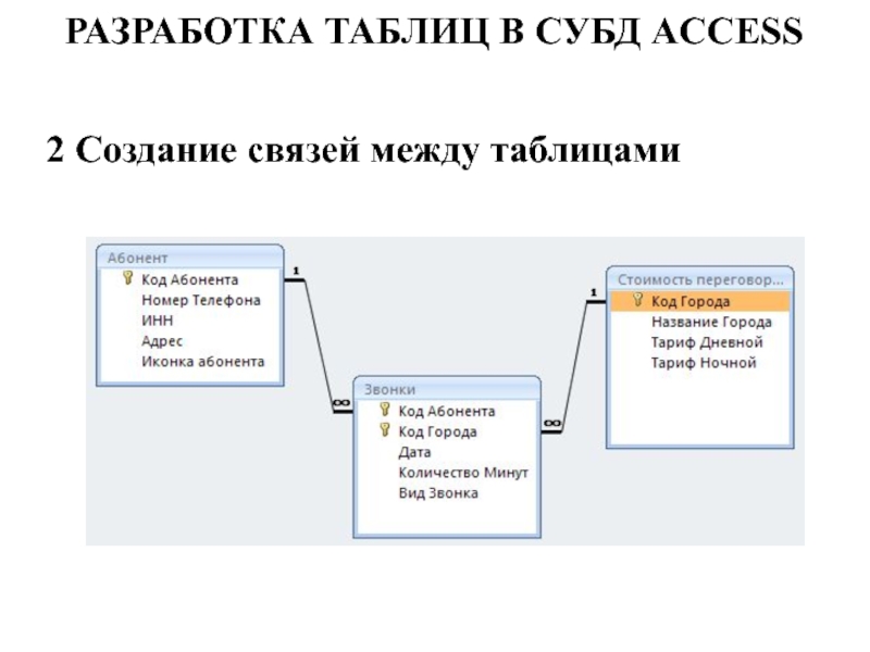 Разработка таблиц в СУБД Access2 Создание связей между таблицами