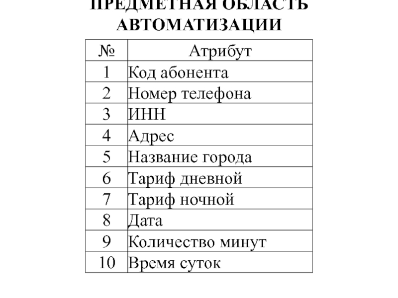 Описать предметную область автоматизации и определить атрибуты-признаки, необходимые для разработки