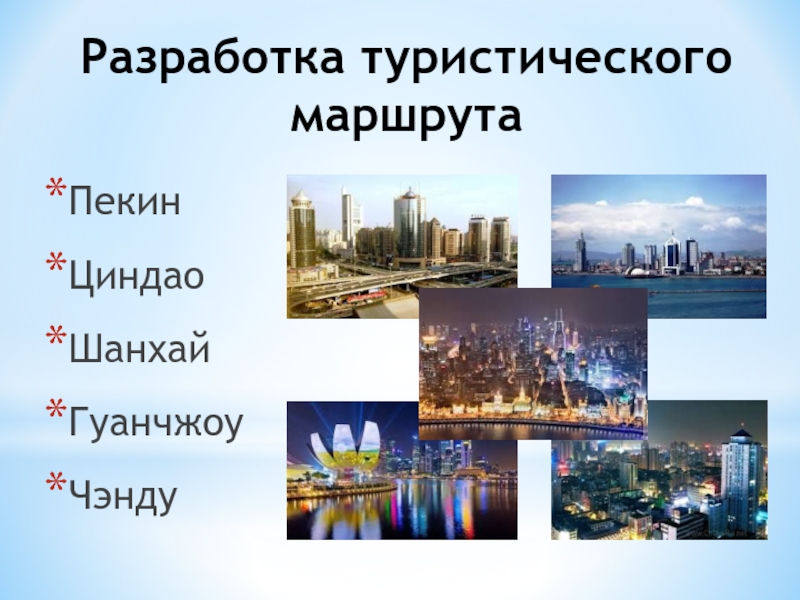 Разработка туристического маршрутаПекин ЦиндаоШанхайГуанчжоуЧэнду