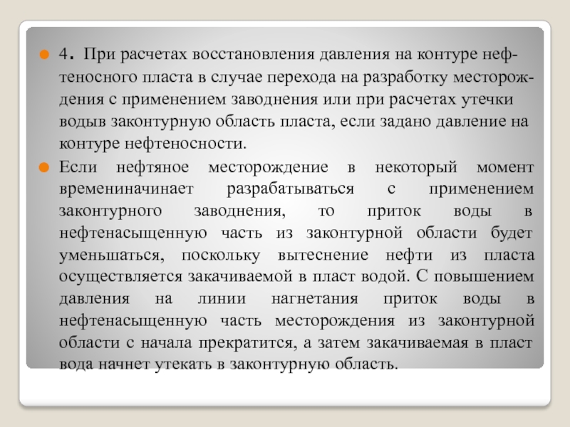 Слайд 16При расчетах утечки воды в законтурную область можетпотребоваться решение задачи