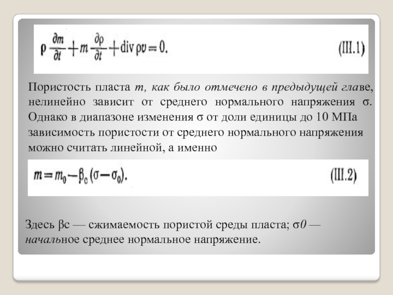 Слайд 18Здесь βс — сжимаемость пористой среды пласта; σ0 — начальное