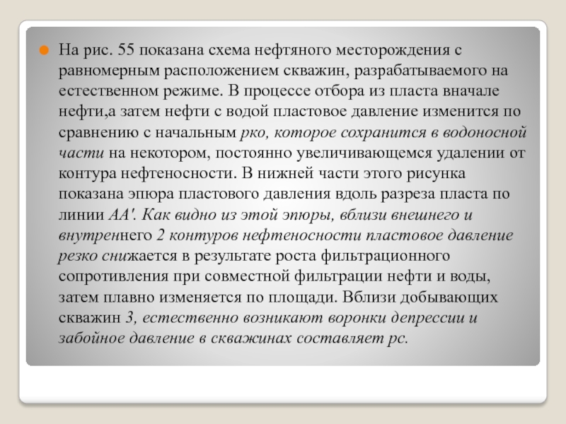 Слайд 9На рис. 55 показана схема нефтяного месторождения с равномерным расположением