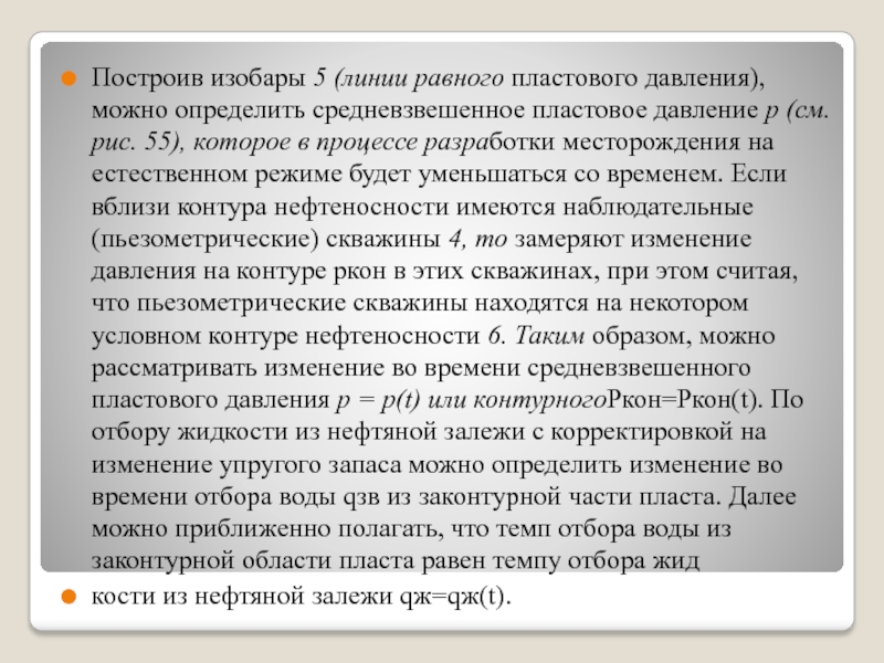 Слайд 11Построив изобары 5 (линии равного пластового давления), можно определить средневзвешенное