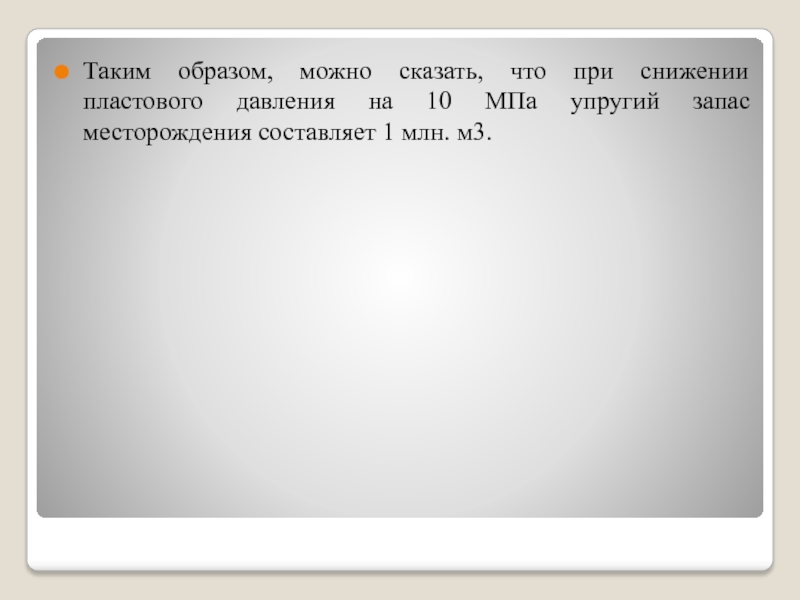 10 МПа упругий запас месторождения составляет 1 млн. м3.
