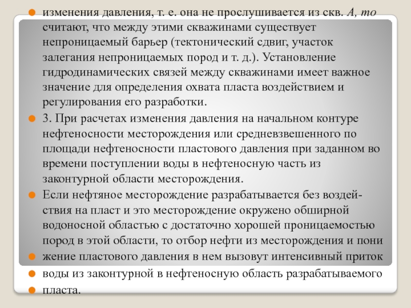 сдвиг, участок залегания непроницаемых пород и т. д.). Установление гидродинамических связей между скважинами имеет важное значение для определения охвата пласта воздействием и регулирования его разработки.