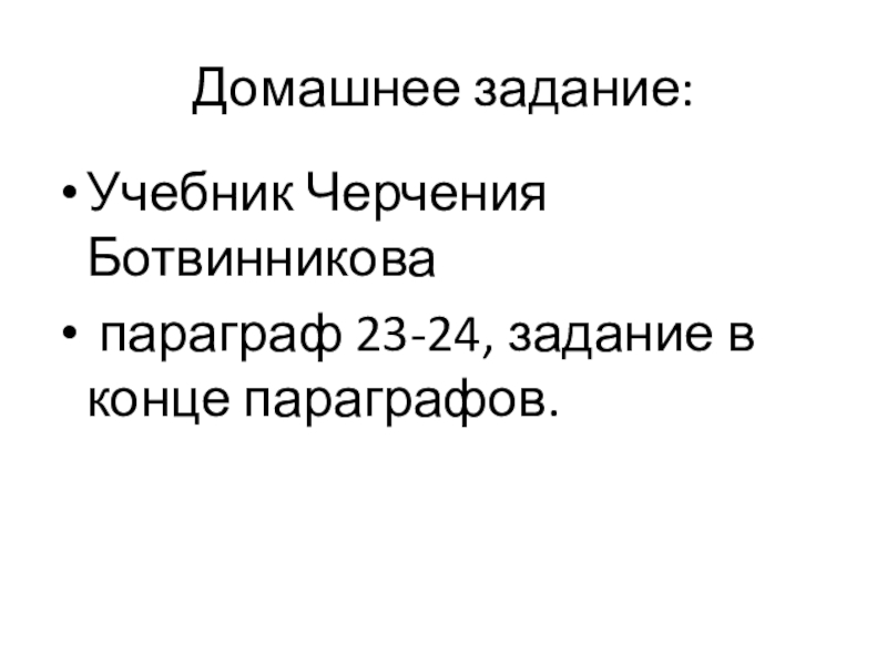 Домашнее задание: Учебник Черчения Ботвинникова параграф 23-24, задание в конце параграфов.
