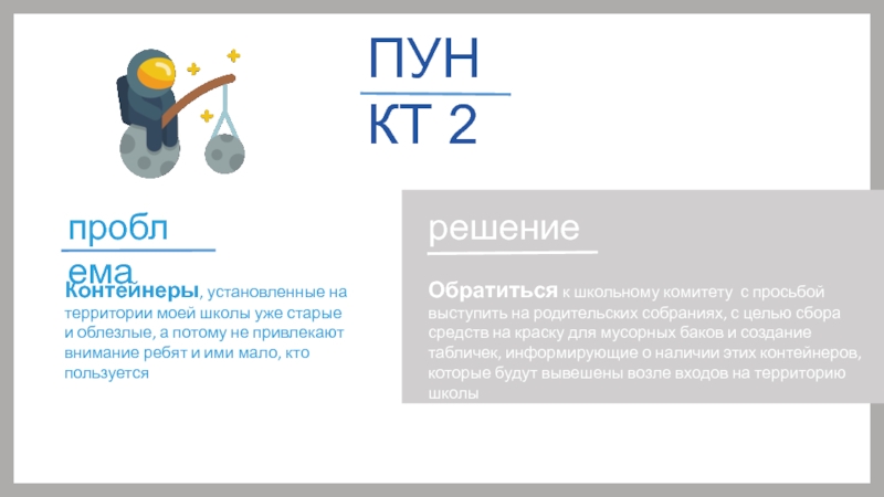 Обратиться к школьному комитету с просьбой выступить на родительских собраниях, с целью сбора средств на краску для мусорных баков и создание табличек, информирующие о наличии этих контейнеров, которые будут вывешены возле входов на территорию школы