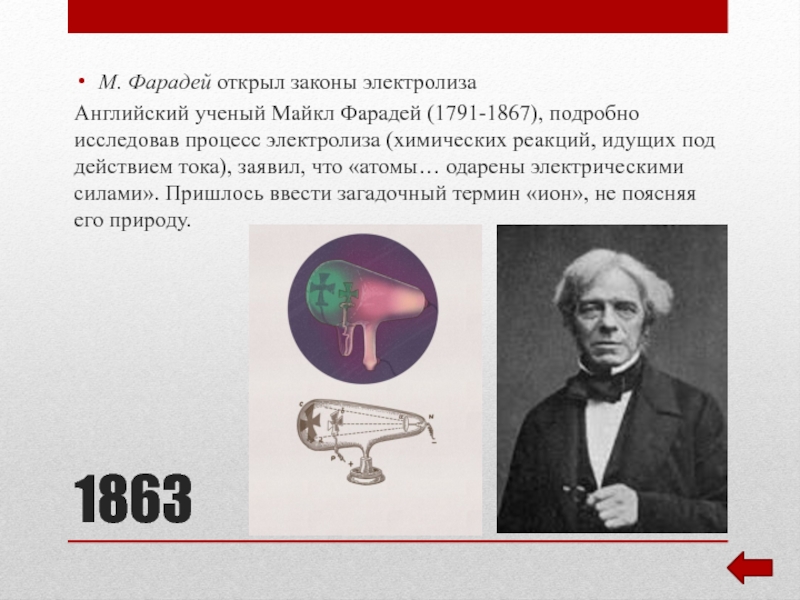 исследовав процесс электролиза (химических реакций, идущих под действием тока), заявил,