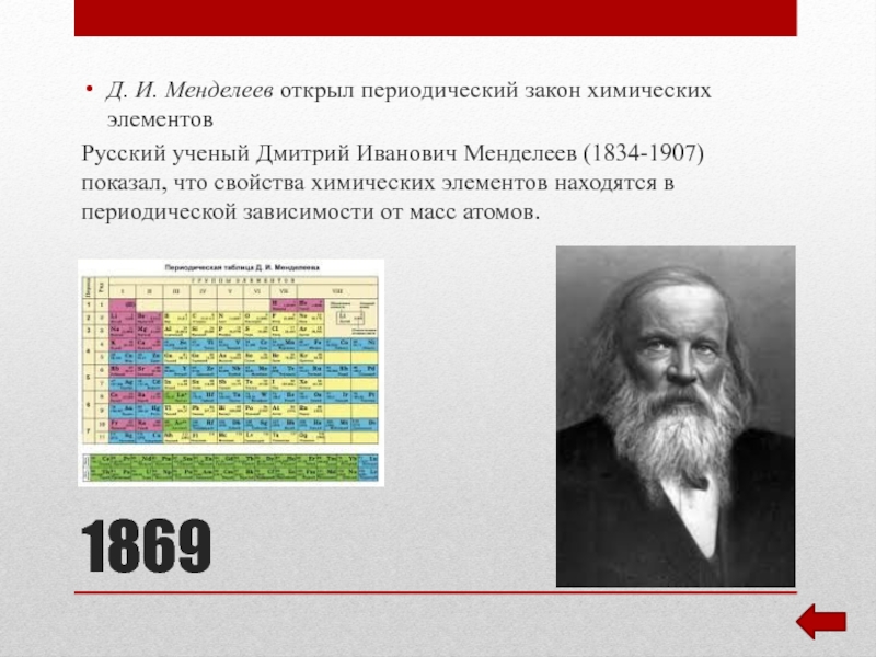 Иванович Менделеев (1834-1907) показал, что свойства химических элементов находятся в