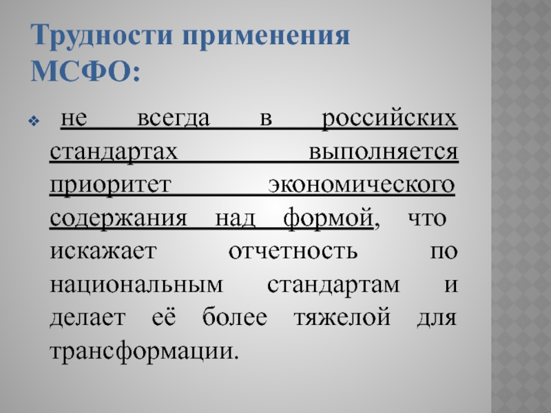содержания над формой, что искажает отчетность по национальным стандартам и