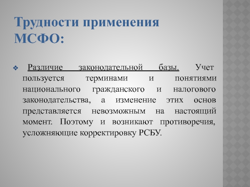 невозможным на настоящий момент. Поэтому и возникают противоречия, усложняющие корректировку РСБУ.