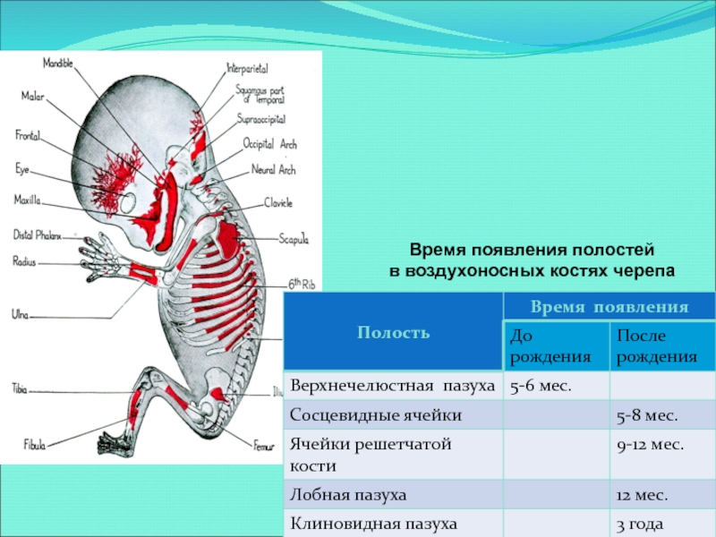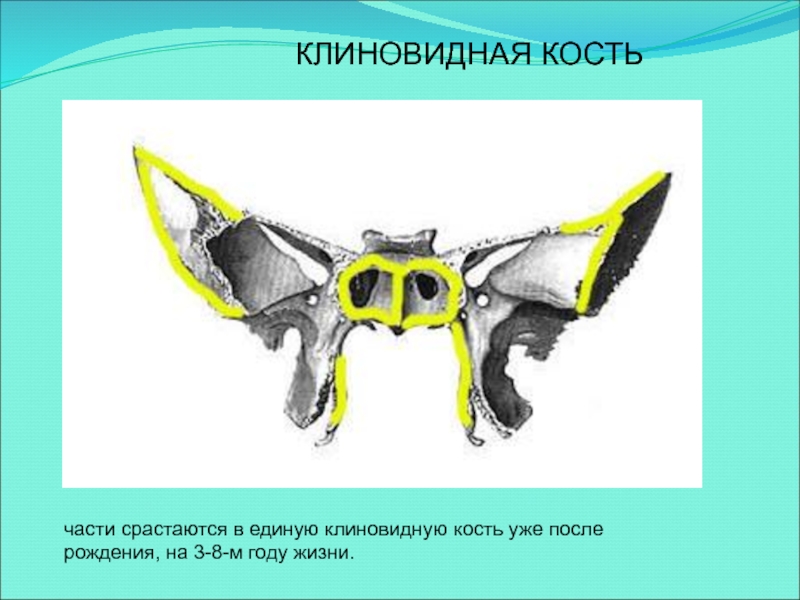 Слайд 21части срастаются в единую клиновидную кость уже после рождения, на