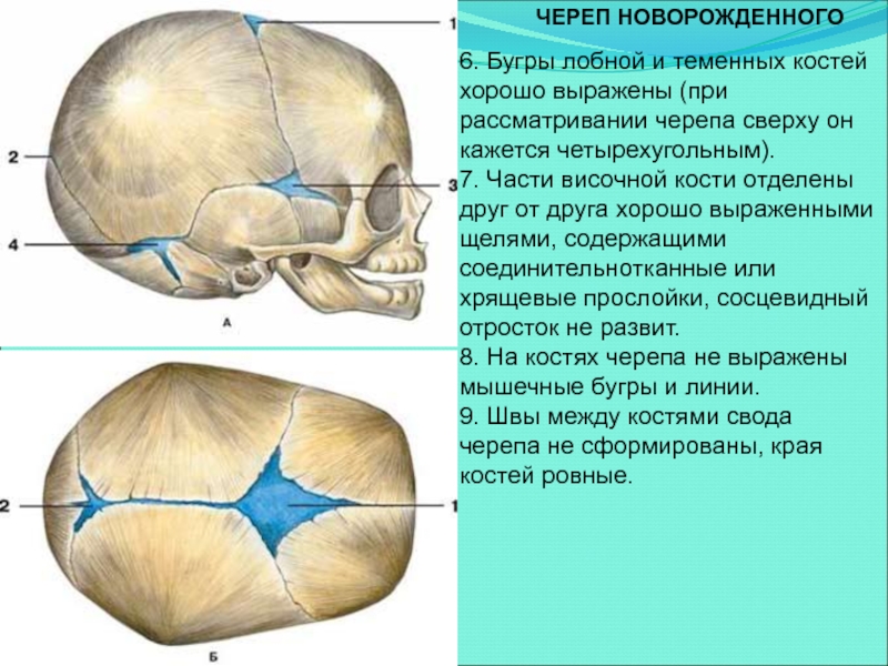 6. Бугры лобной и теменных костей хорошо выражены (при