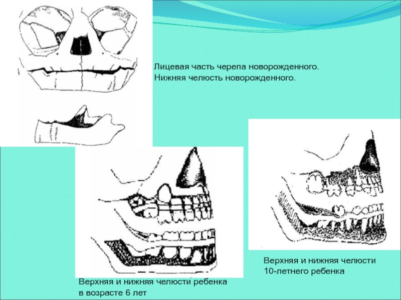 Лицевая часть черепа новорожденного. Нижняя челюсть новорожденного.