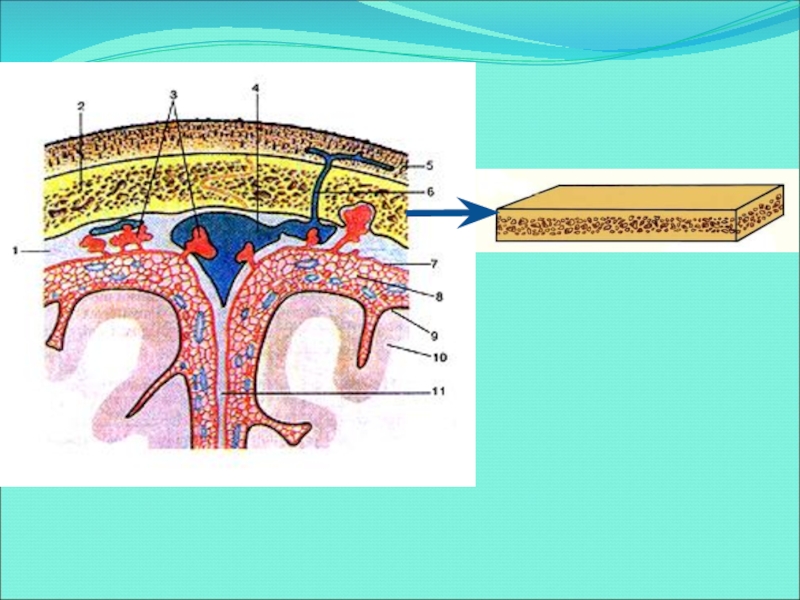 Слайд 11В отдельных местах черепа имеются костные утолщения, по которым передается