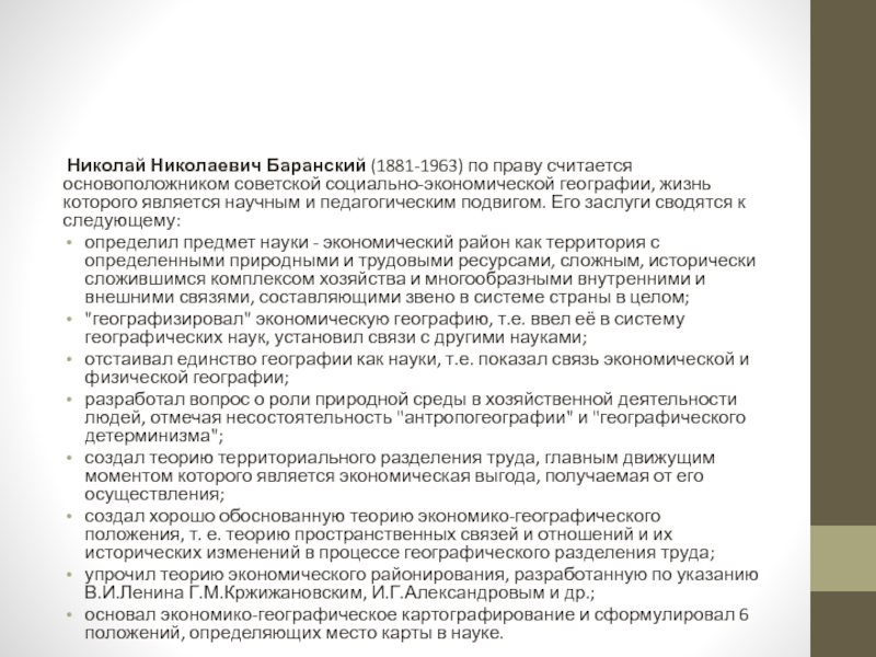 Слайд 6 Николай Николаевич Баранский (1881-1963) по праву считается основоположником советской социально-экономической географии,