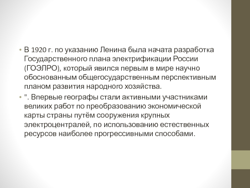 Слайд 4В 1920 г. по указанию Ленина была начата разработка Государственного