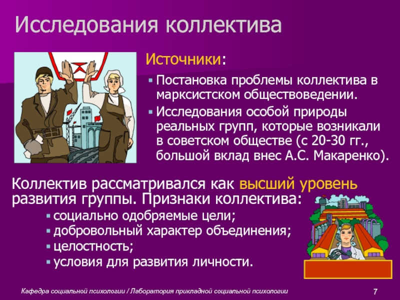 Коллектив рассматривался как высший уровень развития группы. Признаки коллектива: