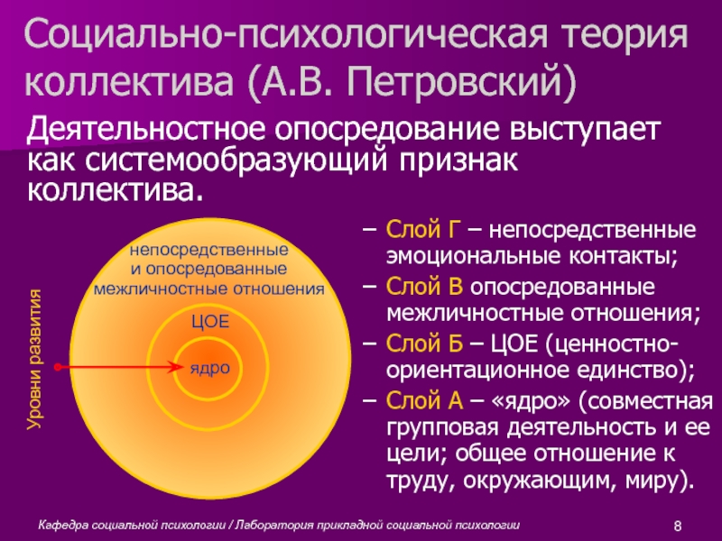 Деятельностное опосредование выступает как системообразующий признак коллектива.