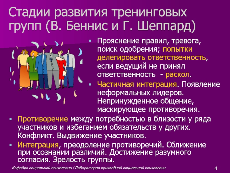 Противоречие между потребностью в близости у ряда участников и избеганием обязательств у других. Конфликт. Выдвижение участников.