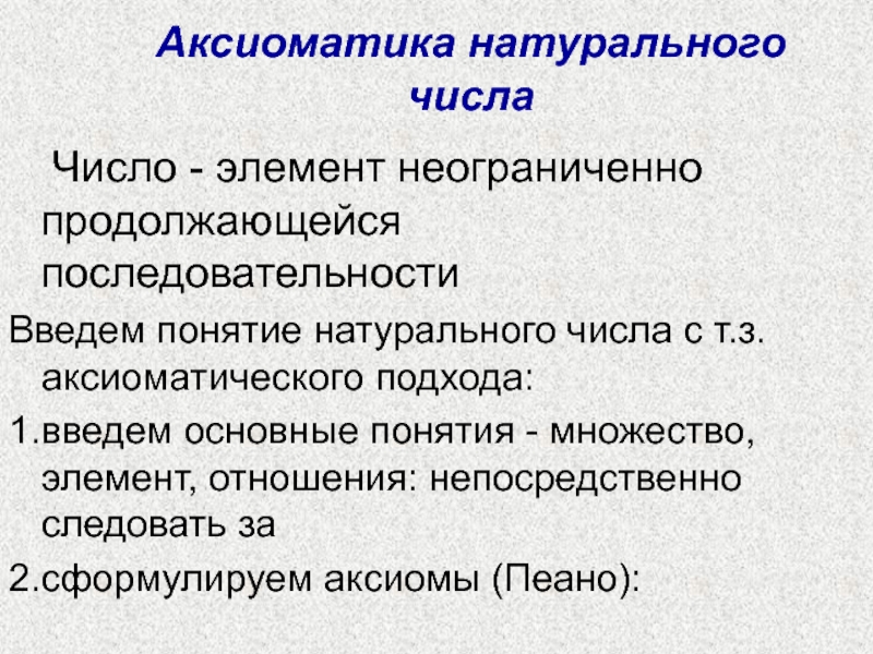 Слайд 17Аксиоматика натурального числа