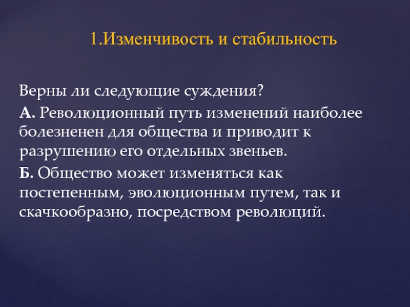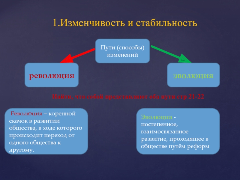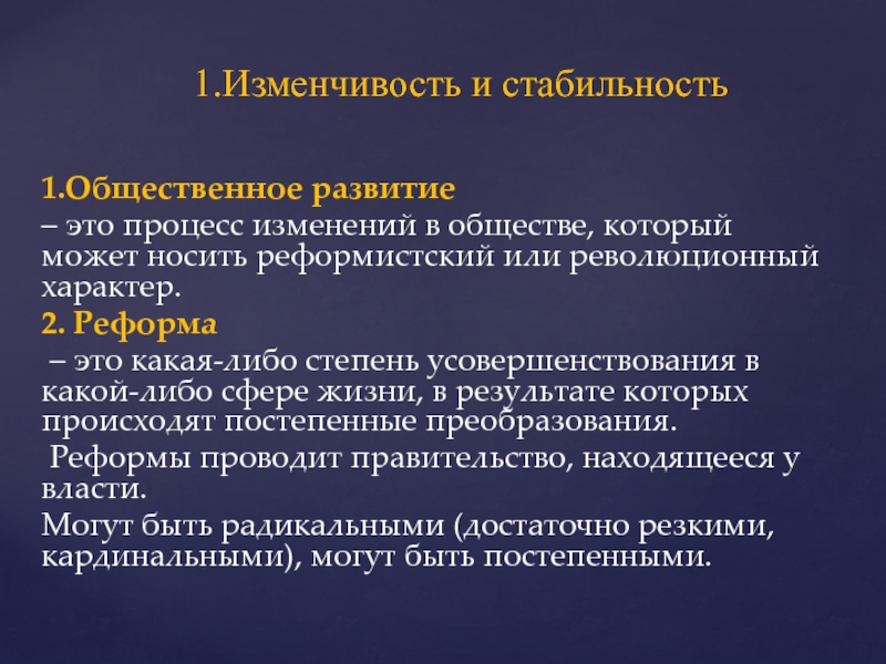 Эволюция - постепенное, взаимосвязанное развитие, проходящее в обществе путём реформ