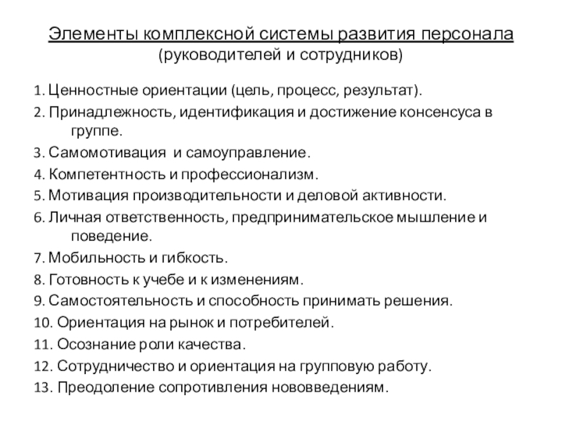 Слайд 19Элементы комплексной системы развития персонала