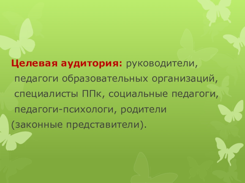Целевая аудитория: руководители, педагоги образовательных организаций, специалисты ППк, социальные педагоги, педагоги-психологи, родители (законные представители).