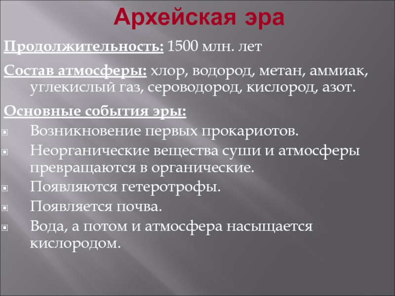 голую пустыню: климат холодный, частые оледенения, особенно обширны в середине протерозоя. В конце эры содержание свободного кислорода в атмосфере достигло 1%. Шло активное образование осадочных пород.