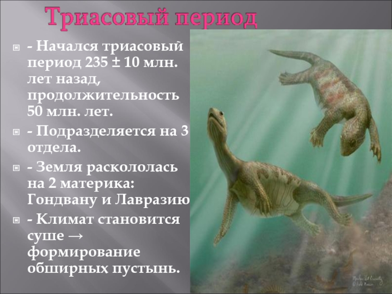Слайд 19- Начался триасовый период 235 ± 10 млн. лет назад,