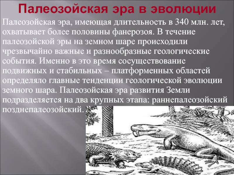 Слайд 11Палеозойская эра, имеющая длительность в 340 млн. лет, охватывает более