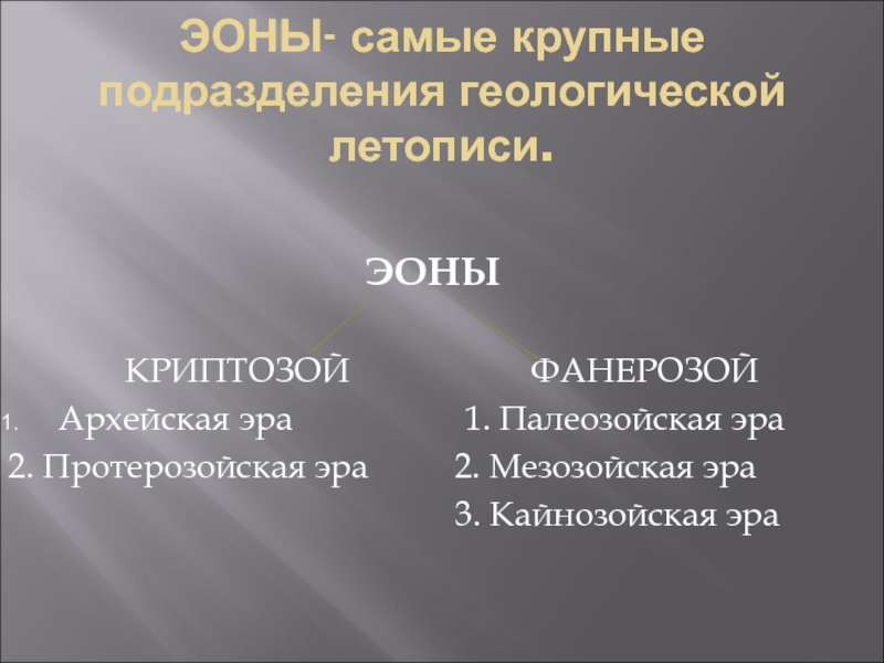 Слайд 2ЭОНЫ- самые крупные подразделения геологической летописи.