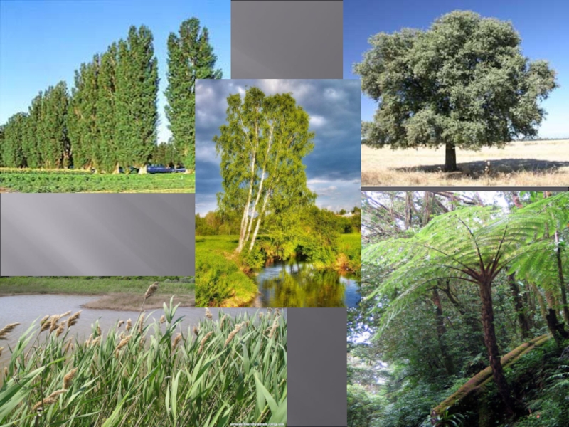 и лавры, в средних широтах преобладают хвойные, тополя, ольхи, дубы,