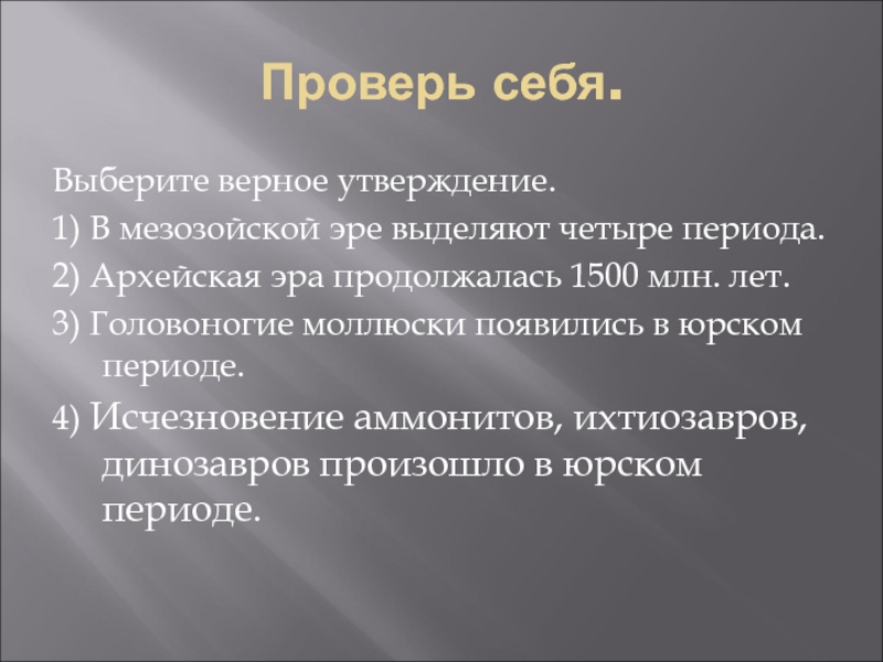 4) Исчезновение аммонитов, ихтиозавров, динозавров произошло в юрском периоде.