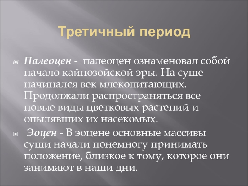 Палеоцен - палеоцен ознаменовал собой начало кайнозойской эры. На