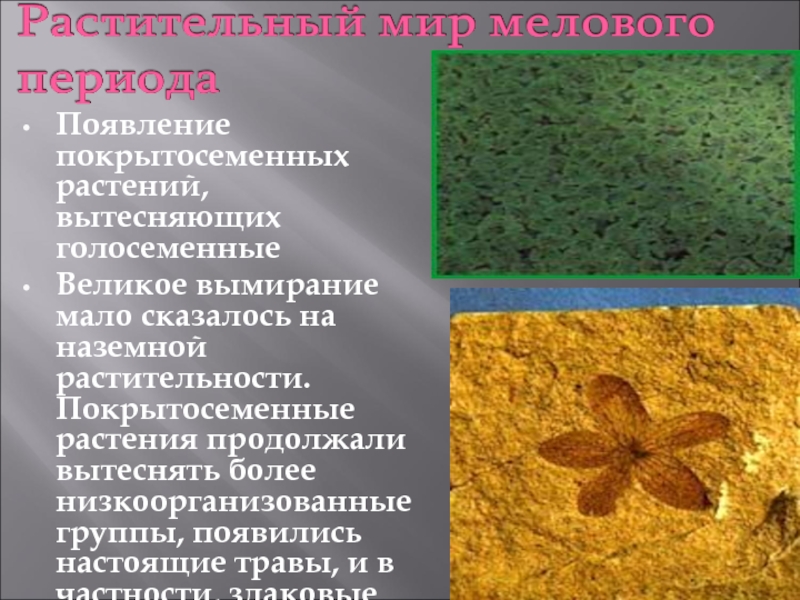 Слайд 29Появление покрытосеменных растений, вытесняющих голосеменные