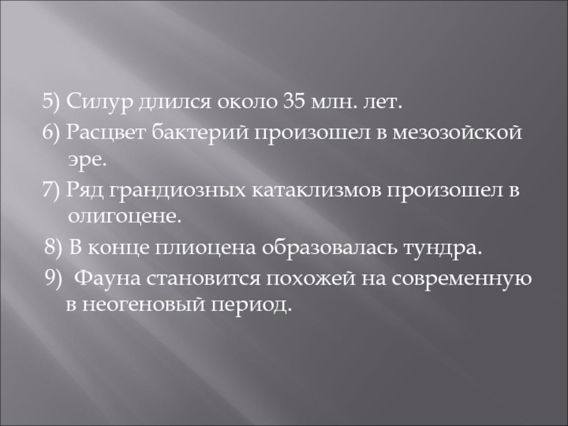 7) Ряд грандиозных катаклизмов произошел в олигоцене.