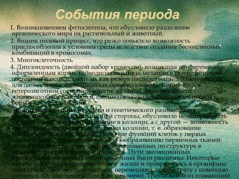 1. Возникновением фотосинтеза, что обусловило разделение