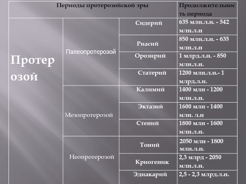 Слайд 14 Началом протерозойской эры принято считать время 2,5 млрд. лет назад.